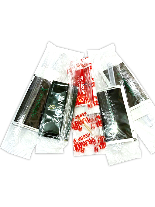 Çatal, bıçak, kaşık, ıslak mendil, kürdan gibi ürünleri içerisinde bulunduran setler toptan sipariş verilebilir.